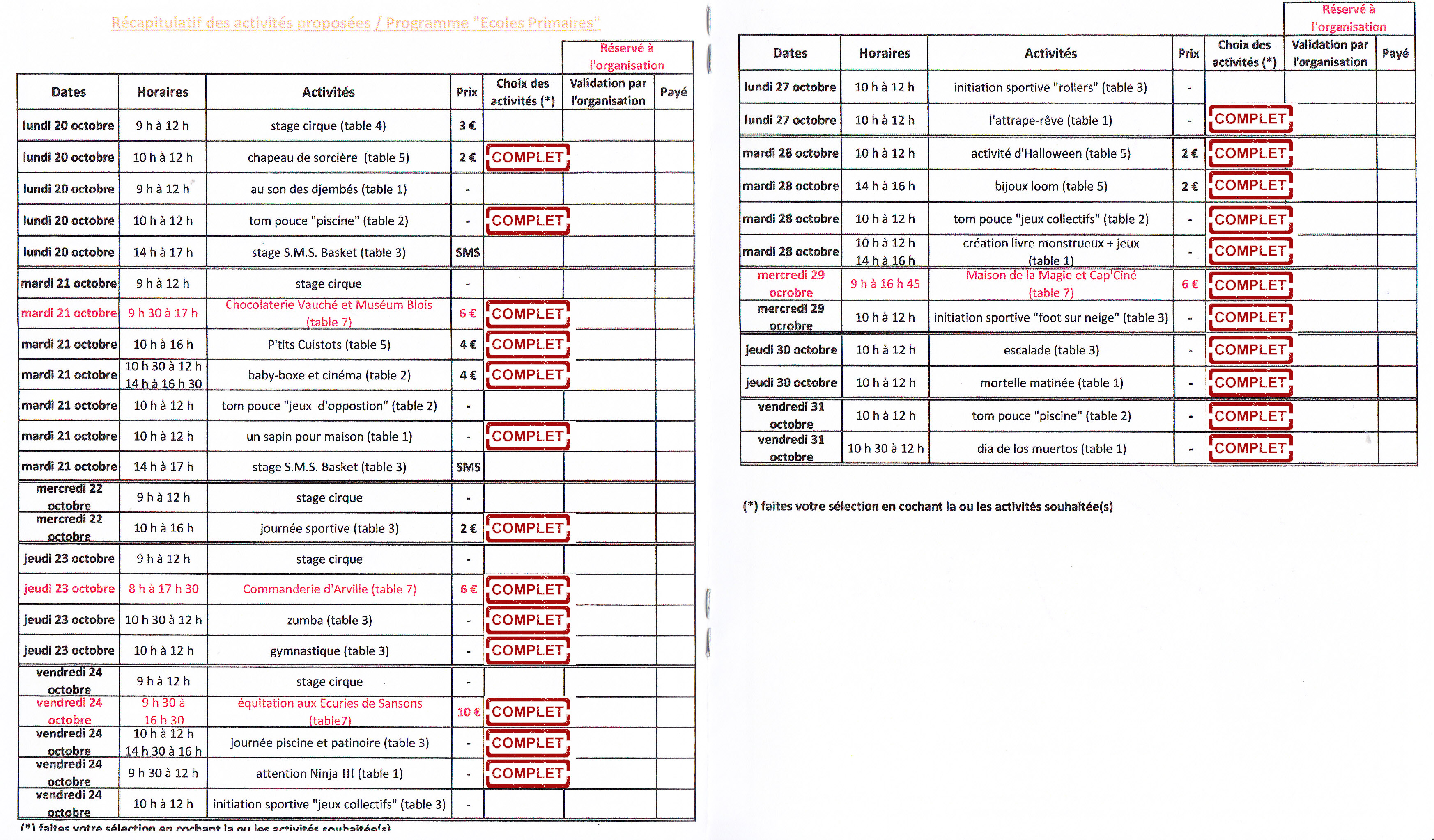 Suivi des places restantes (mis à jour le 16/10/2014 à 11h00)
